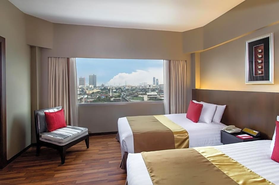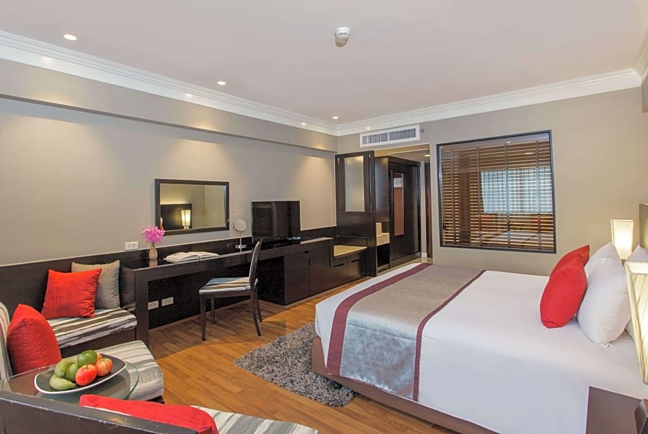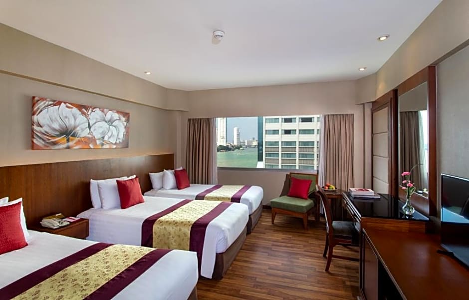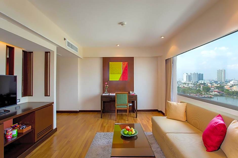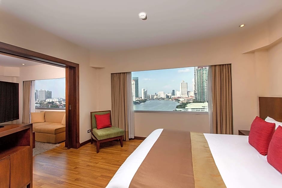 Das Ramada Plaza by Wyndham Bangkok Menam Riverside in Bangkok liegt am Chao Phraya-Fluss und verbindet Fünf-Sterne-Luxus mit malerischen Wasserblicken. Der Außenpool ist kostenlos nutzbar und lädt nach einem Tag voller Erkundungen zu einem erfrischenden Bad ein. Eine Terrasse und ein Garten schaffen entspannende Rückzugsorte, während Flussbrisen dem Aufenthalt zusätzliche Ruhe verleihen.